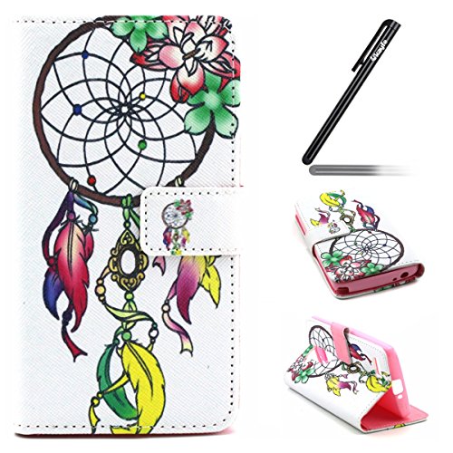 Ukayfe Custodia LG L Bello in Pelle, Portafoglio / wallet / libro Flip elegante e di alta qualità con porta carte di credito e banconote Stampa creativa Chiusura Magnetica Protettiva Cover Case per LG L Bello (D331,D335,D337) con Stilo Penna - Fiori colorati Dreamcatcher