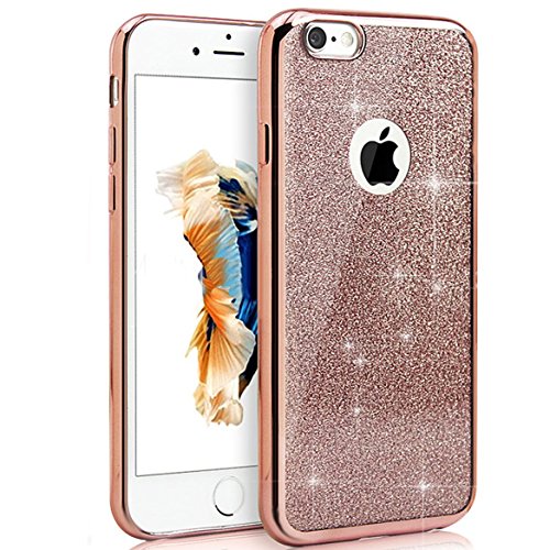 Ukayfe Custodia Cover iPhone 6/6S Plus Silicone, Ultra Slim Custodia Cover Resistenti per iPhone 6/6S Plus,Confine di Placcatura Coperture Sottile Morbida Soft TPU Gomma Gel Glitter-Oro Rosa