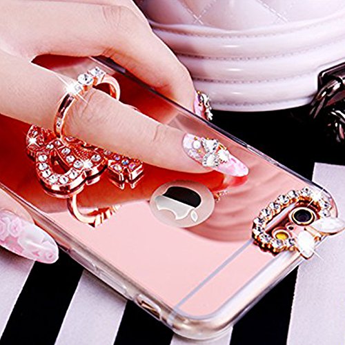 Ukayfe Custodia Cover per iPhone 7/8, Cover Specchio Lusso Placcatura Lucido di Cristallo Strass Diamante Glitter Caso Ultra Sottile Silicone Gel Case Skin Cover Shell per iPhone 7/8-Oro Rosa 1#