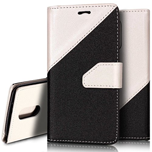 Ukayfe Custodia Cover LG K4 2017, Stitching Colore Ultra Slim Flip Case Cover [PU Leather][Shock-Absorption] con Super Sottile TPU Interno Case/Porta Carte Credito/Bumper per LG K4 2017-Nero+Bianco