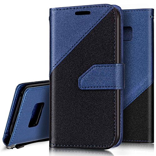 Ukayfe Custodia Galaxy S8 Plus, Wallet PU Lussuosa Case [PU Leather] Foglio Stitching Colore con Sottile Morbido Silicone TPU Interno Case/Porta Carte di Credito per Samsung Galaxy S8 Plus-Nero + Blu