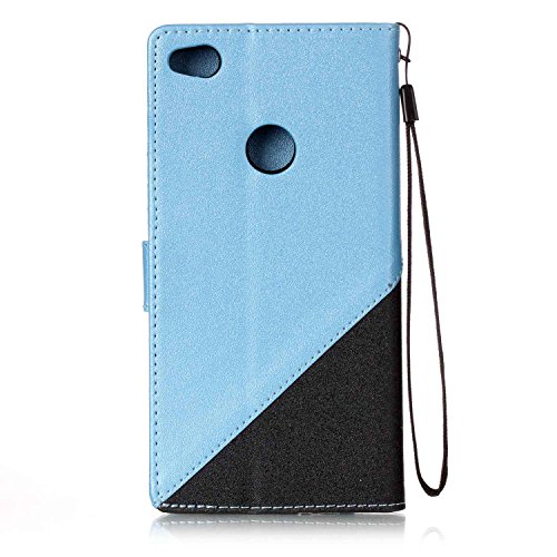 Ukayfe Custodia Huawei P8 Lite 2017, PU Lussuosa Case [PU Leather] Foglio Stitching Colore con Sottile Morbido Silicone TPU Interno Case/Porta Carte di Credito per Huawei P8 Lite 2017-Nero + Azzurro