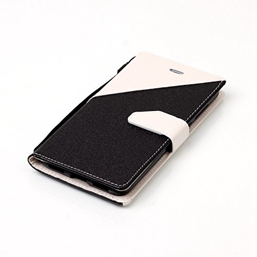Ukayfe Custodia Huawei P8 Lite 2017, PU Lussuosa Case [PU Leather] Foglio Stitching Colore con Sottile Morbido Silicone TPU Interno Case/Porta Carte di Credito per Huawei P8 Lite 2017-Nero + Bianco
