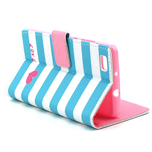Ukayfe Custodia Huawei P8 Lite in Pelle, Portafoglio / wallet / libro Flip elegante e di alta qualità con porta carte di credito e banconote Stampa creativa Chiusura Magnetica Protettiva Cover Case per Huawei P8 Lite con Stilo Penna - Blu, Bianco, Striato amore cuore