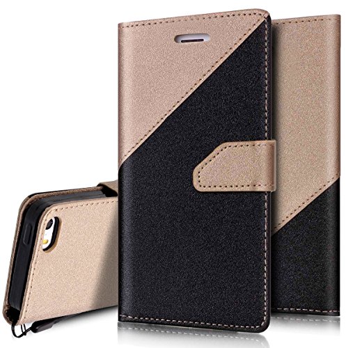 Ukayfe Custodia iPhone 5S Cover iPhone 5 Case iPhone Stitching Colore Flip Case Cover per iPhone 5S / SE iPhone SE Lussuosa Custodia Cover PU Leather Protettiva Portafoglio Cover-Nero + Oro