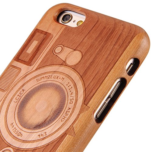 Ukayfe Custodia per iPhone 6/6S, iPhone 6 4.7 Pollici Cover Rigida in Legno, Impressionante Texture di Superficie Design Legno di Rosa Naturale di bambù Back Case Cover - Retro Radio