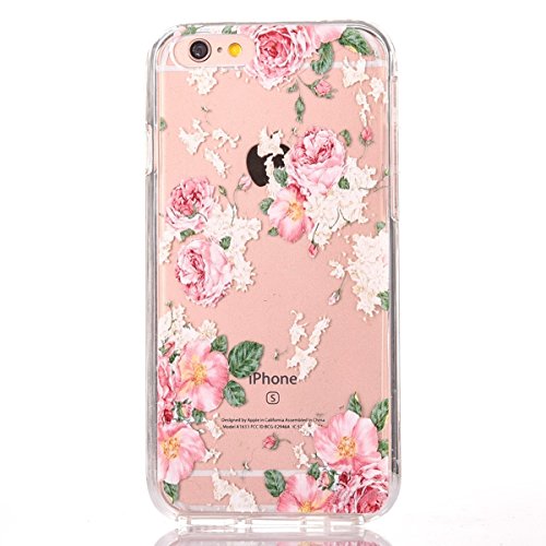 Ukayfe 2 in 1 Custodia per iPhone 6/6S 4.7 In TPU silicone e plastica Stilosa Fresco Copertura custodia cassa case protettiva cover bumper per iPhone 6/6S 4.7, Moda Serie Pattern Back Cover Crystal Skin Custodia Stilosa custodia di design Protettiva Shell Case Cover antigraffio Cover posteriore- Stilosa custodia di design in morbido TPU Con Free Stilo Penna-Roses