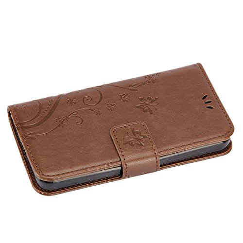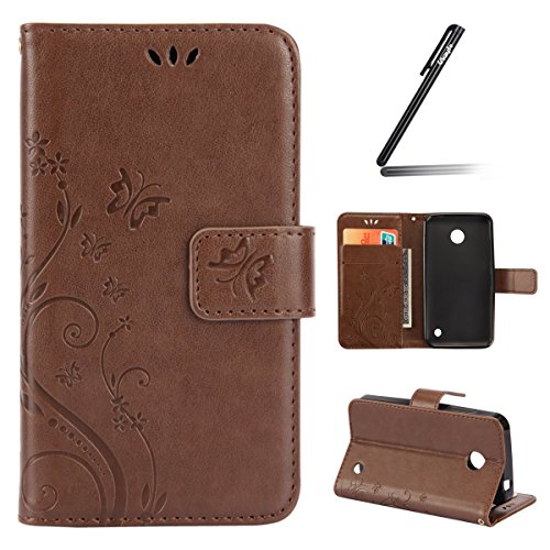 Ukayfe Custodia per Nokia Lumia 635, Nokia Lumia 630, motivo con farfalla e fiore, in similpelle PU, design a portafoglio/libro, con funzione leggio e scomparti per carte, Ukyfe0011996