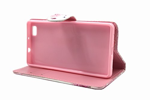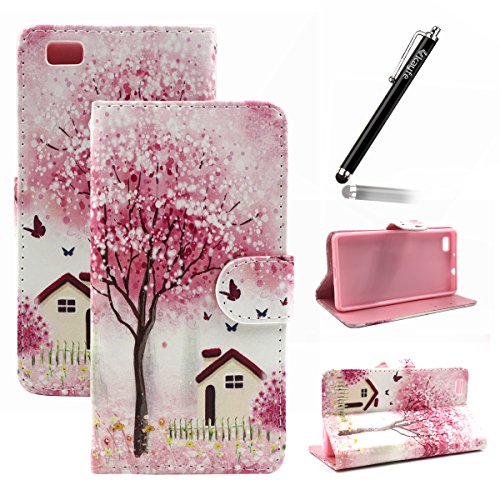 Ukayfe Custodia portafoglio / wallet / libro in pelle per Huawei P8 Lite - Cover elegante e di alta qualità con porta carte di credito e banconote Stampa creativa Con Stilo Penna - Rosa fiori di ciliegio mondo
