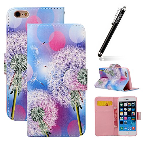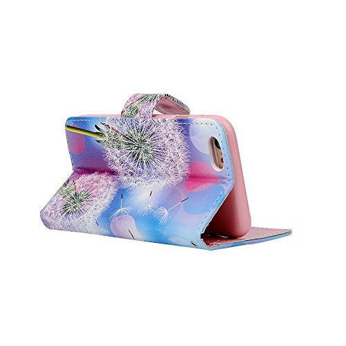 Ukayfe Custodia portafoglio / wallet / libro in pelle per iphone 6/6S (4.7") - Cover elegante e di alta qualità con porta carte di credito e banconote Stampa creativa Con Stilo Penna - Abbastanza alone colorato e denti di leone