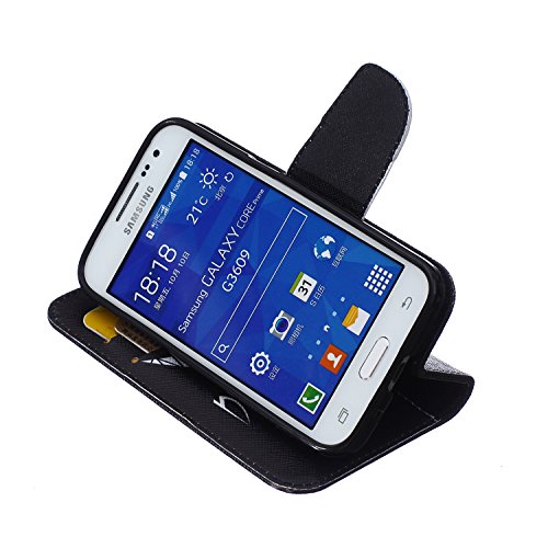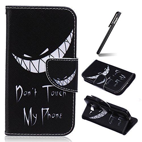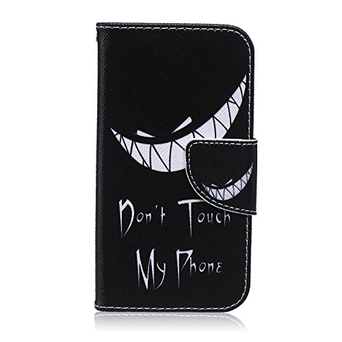 Ukayfe Custodia portafoglio / wallet / libro in pelle per Samsung G360 Galaxy Core Prime - Cover elegante e di alta qualità con porta carte di credito e banconote Stampa creativa e cinghia portatile Con Stilo Penna - Don't touch my phone (squalo)