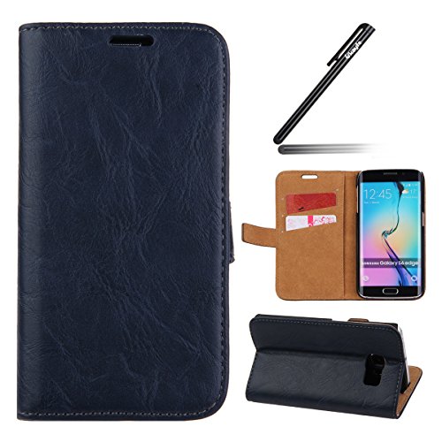 Ukayfe Custodia portafoglio / wallet / libro in pelle per Samsung Galaxy S6 Edge - Supporto Stand e Porta Carte Integrati Portafoglio Flip Cover Stile Libro con Magnetic Detachable con free stilo penna - marina
