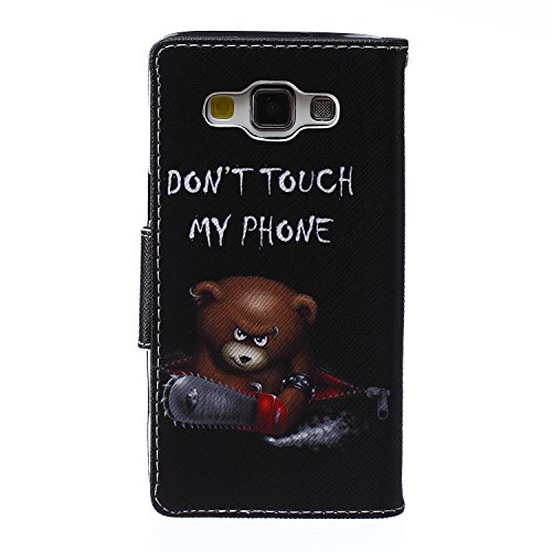 Ukayfe Custodia portafoglio / wallet / libro in pelle per Samsung Galaxy A5 5.0 Pollici (2015) - Cover elegante e di alta qualità con porta carte di credito e banconote Stampa creativa e cinghia portatile Con Stilo Penna - Don't touch my phone (Funny Bear)