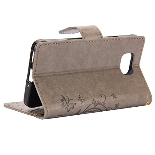Ukayfe Custodia portafoglio / wallet / libro in pelle per Samsung Galaxy Alpha SM-G850F - Cover elegante e di alta qualità con porta carte di credito e banconote Stampa creativa e cinghia portatile Protezione chiusura ventosa Con Stilo Penna - farfalla sollievo (grigio)