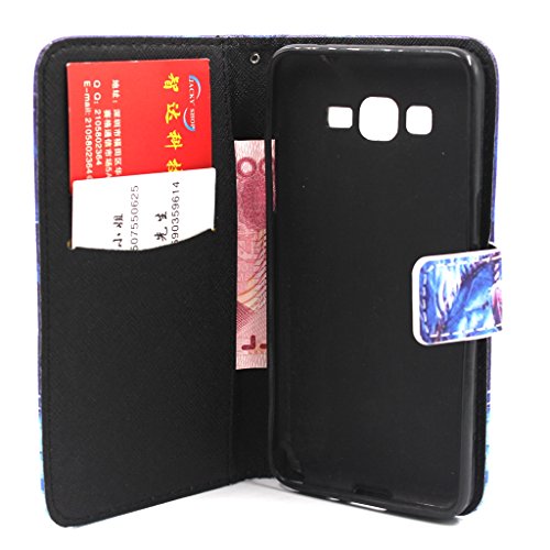 Ukayfe Custodia portafoglio / wallet / libro in pelle per Samsung Galaxy Grand Prime SM-G530FZ - Cover elegante e di alta qualità con porta carte di credito e banconote Stampa creativa Con Stilo Penna - Colore scuro coi lupi