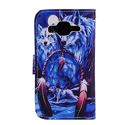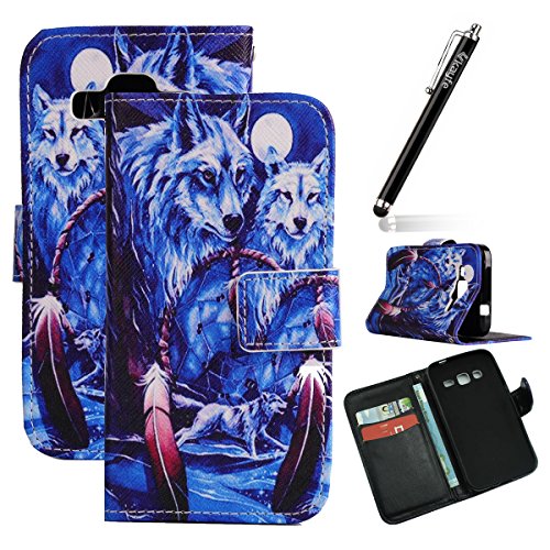 Ukayfe Custodia portafoglio / wallet / libro in pelle per Samsung Galaxy Core Prime (SM-G360F) - Cover elegante e di alta qualità con porta carte di credito e banconote Stampa creativa Con Stilo Penna - Colore scuro coi lupi