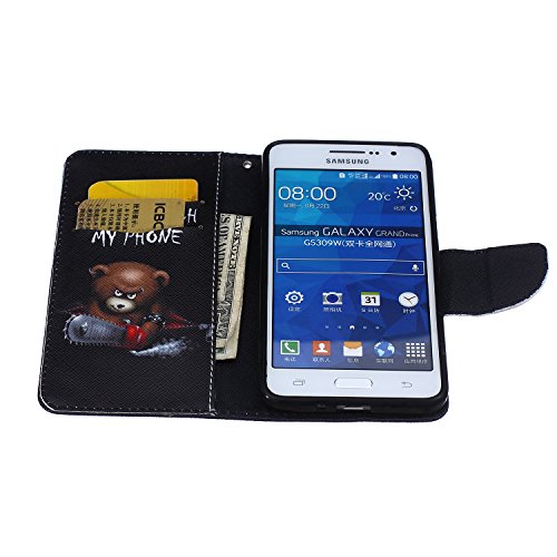 Ukayfe Custodia portafoglio / wallet / libro in pelle per Samsung Galaxy Grand Prime G530 - Cover elegante e di alta qualità con porta carte di credito e banconote Stampa creativa e cinghia portatile Con Stilo Penna - Don't touch my phone (Funny Bear)