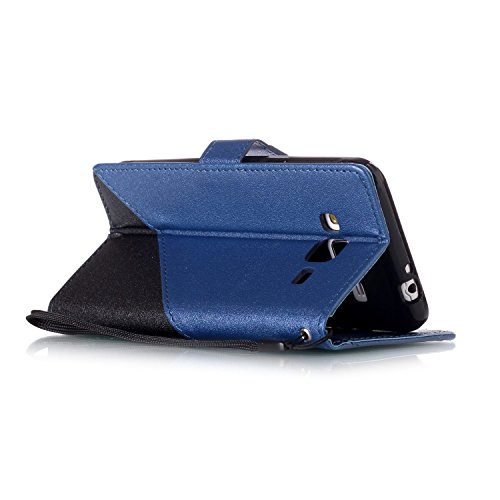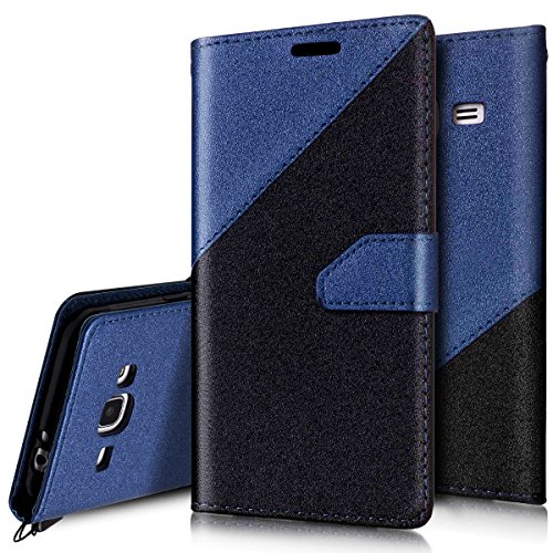 Ukayfe Custodia Samsung Galaxy J3 Cover Samsung Galaxy J3(2016), Stitching Colore Flip Case Cover per Samsung Galaxy J3 J3(2016), Lussuosa Astuccio Custodia Cover Protettiva Portafoglio-Nero + Blu