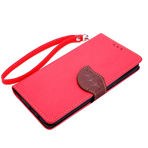 Ukayfe Huawei Ascend G7 Custodia Huawei Ascend G7 Elegante in Pelle Custodia Case Cover Protezione Chiusura Ventosa (Rosso) con Holder e cordicella della Cinghia Portatile + Stilo Penna