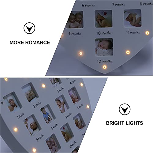 UKCOCO Bambino Anno Photo Frame con La Luce A Forma di Cuore Neonato 12 Mesi Immagine Collage Ricordo Del Bambino Registro Doccia Regalo per Applique da Parete Da Tavolo Nursery