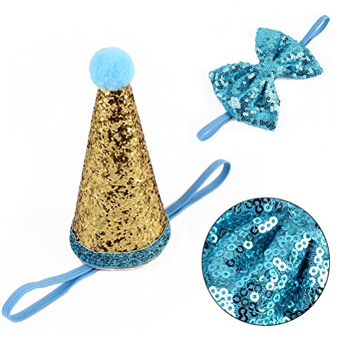 UKCOCO Cappello a Cono Glitter con Papillon per Cani e Gatti in Blu
