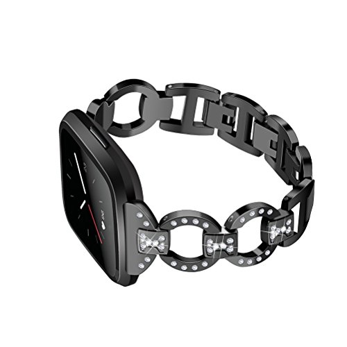 UKCOCO Cinturino in acciaio inossidabile per Fitbit, donne cinturino in metallo con diamanti di lusso Cinturino di ricambio per Fitbit (Nero)