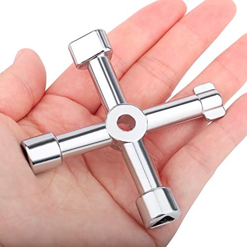 UKOFEW 4-Modi Chiave di Utility, Chiave a 4 vie, Chiave Della Scatola Elettrica, Lega Zinco, per Contatore Acqua, Cassetta Gas, Armadio Utenze, Quadro Elettrico, Ascensori (Argento)