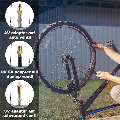 【Ampia Applicazione】 Adattatore valvola per biciclette è adatto a tutte le valvole comuni, mountain bike, bici da corsa e cyclette con tubi valvolare. Oltre al set di adattatori per bici, ottieni anche 2 adattatori per gonfiare palloncini ad aria, materassi ad aria, piscine gonfiabili e altro ancora.