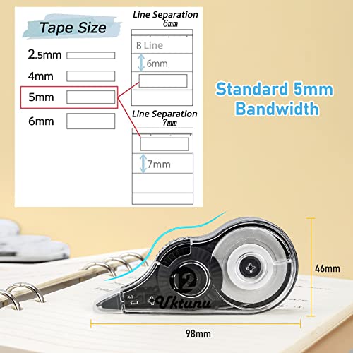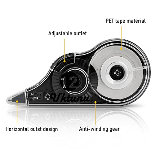 Uktunu Correttore a Nastro 12 pezzi 8m x 5mm Nastro di Correzione Scrittura Nastro Correction Tape, Sano ed Ecologico, Innocuo e Approvato Dalla FDA per Bambini Studenti e Ufficio - Nero
