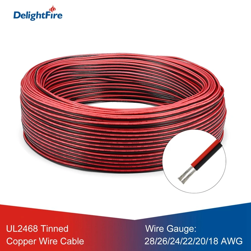 UL2468 2Pin Electrical Wire 28/26/24/22/20/18AWG Red Black Cable Tinned Copper Wires For LED Strip Lights DIY High Quality Cable