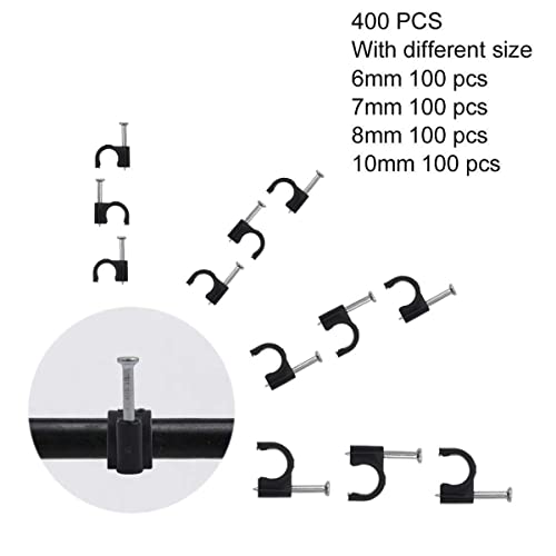 4 diverse misure - Confezione da 400 pezzi, include 6 mm, 7 mm, 8 mm, 10 mm clip per cavo cerchio con chiodo in acciaio. 100 pezzi per ogni dimensione.
