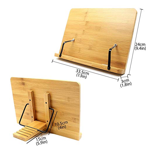 1) Materiale perfetto e buona qualità: fatto di bambù naturale, verniciato in legno di bambù che è liscio, bello, robusto, elegante, resistente e look magnifico.Può ospitare spessa cornice books. Studio tenere aperto il libro sono ben coperti e non danneggiare la carta.