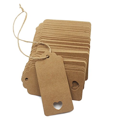 Ulable Targhette da regalo 100PCS, cartellini da appendere rettangolari marrone Kraft con foro a forma di cuore per la decorazione fai-da-te, etichetta prezzo, segnalibri, matrimonio