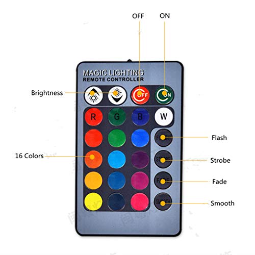 Semplicemente controllato da un telecomando IR a 24 tasti o un pulsante touch intelligente in 16 modalità statiche a colori singoli (rosso, verde, blu, giallo, ciano, rosa, bianco) e 4 modalità di colori flash dinamici (Flash / Strobo / Dissolvenza / Smooth) e luminosità aggiustato.