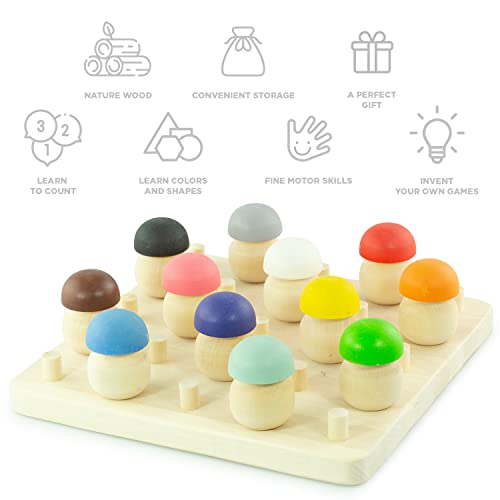 Ulanik Mushroom Glade Montessori Giocattolo di legno Sorter Gioco 25 Funghi 45mm Età 3+ Colore di smistamento e il conteggio in età prescolare Learning Education