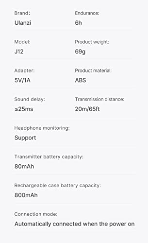 ULANZI J12 Microfono Wireless Smartphone Smartphone con Connessione Lightning Compatibile con iPhone e iPad