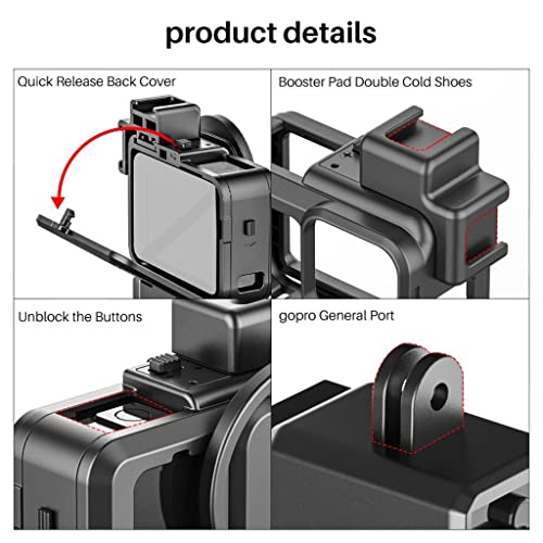 ULANZI G9-4 Vlog Plastica per GoPro 9 Black & GoPro Hero 10 Nero - Custodia per Gabbia video con adattatore filtro e supporto per scarpa freddo