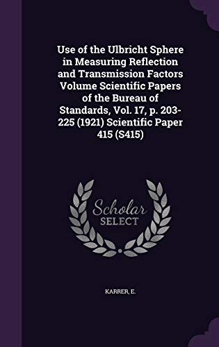 Use of the Ulbricht Sphere in Measuring Reflection and Transmission Factors Volume Scientific Papers of the Bureau of Standards, Vol. 17, p. 203-225 (1921) Scientific Paper 415 (S415)