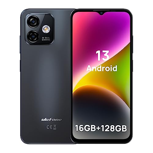 Ulefone Note 16 Pro Android 13 Smartphone, 16GB+128GB ROM, 50MP+8MP Fotocamera, Telefono Cellulare 6,52''HD+, Octa-Core Dual SIM 4G, 4400mAh Ricarica Rapida 10W, Face ID/Fingerprint/OTG, Nero