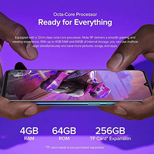 ★【Processore octa-Core, pronto per tutto:】 fornito con un processore octa-core 12nm-class, il Note 9P ti da un'esperienza di gioco e di visualizzazione fluida. Con una memoria interna di 64GB e fino a 4GB di RAM, puoi usare più app allo stesso momento e salvare più foto, canzoni e app.