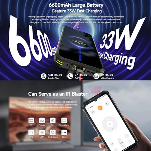Ulefone Armor 22 Pro 16GB+256GB Rugged Smartphone Android 13, 64MP Visione Notturna IR Telefono Rugged, 6600mAh 33W, 6.58"FHD+ Cellulari Resistente IP68, Dual SIM 4G LTE Telefono Robusto, NFC OTG GPS