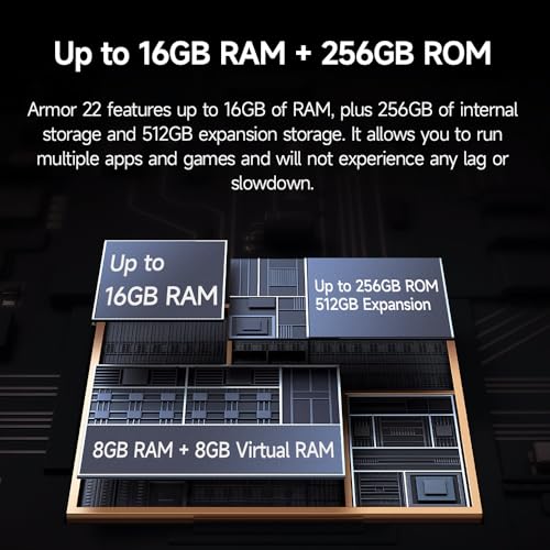 【Supporto per smartphone da 16 GB + 256 GB + espansione da 512GB】 Con una memoria di base di 8 GB di RAM e 256 GB di ROM, il telefono Android Ulefone Armor 22 è caratterizzato dal multitasking. E con lo smartphone da esterno Ulefone 22 con tecnologia di espansione RAM, puoi ottenere ulteriori 8 GB di RAM virtuale attraverso le impostazioni, fino a 16 GB di memoria. Inoltre, 256 GB di memoria interna e una scheda microSD fino a 512GB offrono spazio sufficiente per più app, foto e video.