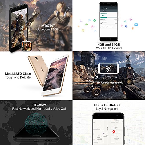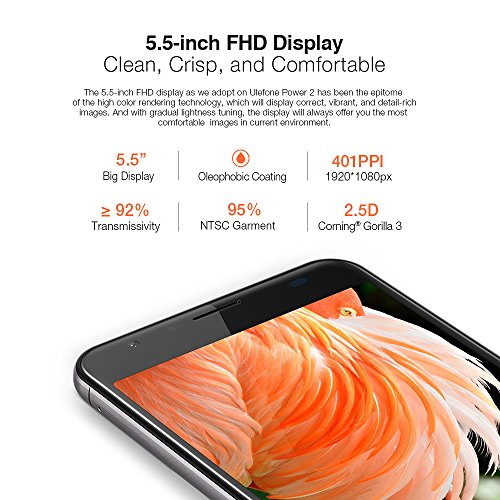 Ulefone Power 2 smartphone batteria super potente 6050mAh, 9V/2A ricarica rapida schermo,5.5 pollici FHD, Android 7.0, Octa-core, 4G+64G, Camera 13MP/8MP, con impronta digitale (Nero)