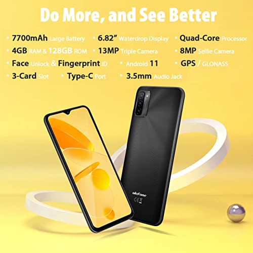 Ulefone Smartphone, Note 12 Telefono 128GB+4GB RAM, 7700 mAh, 4G Cellulare in Offerta, 6,82''Smartphone Offerta, fotocamera 13MP+8MP/Android 11 /Dual SIM/GPS/Impronte Digitali Face ID/OTG-Nero[2022]
