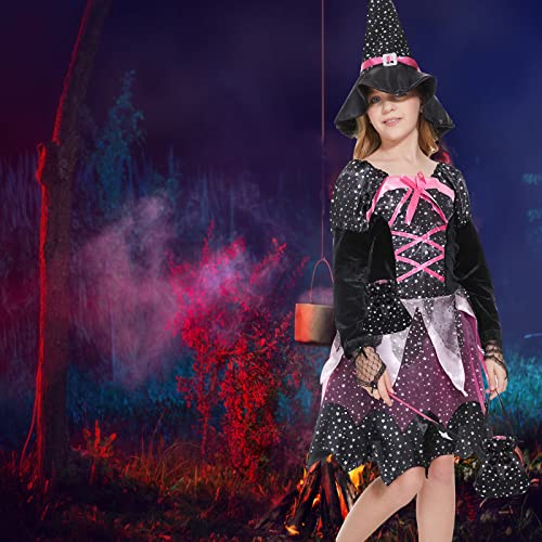 Ulikey Costume da Strega per Ragazza Costume da Travestimento di Halloween Costume da Mago di Halloween con Bacchetta, Cappello e Guanti per Travestimento da Festa & Travestimento di Halloween (S)
