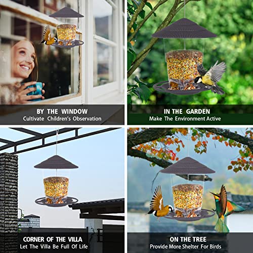 Facile da Riempire - Il design del contenitore trasparente ti consente di sapere quando ricaricare il mangime. Quando gli uccelli abitano e si nutrono di semi, puoi guardare gli uccelli dalla finestra, dal balcone o dal tetto.