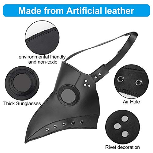 Ulikey Maschera Becco Maschera Medico Dottore della Peste Naso Lungo Maschere Steampunk Maschere Gotiche Costume per Ballo in Maschera Festa di Halloween Cosplay di Carnevale (Black)