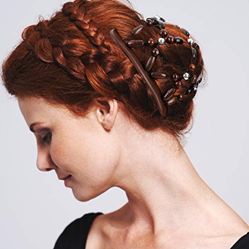 ✿ Facile da usare: L' elastico di pettine per capelli è facile da usare e stabile sulla testa con doppio pettine come magia. Basta mettere un pettine in un lato, allungare l'altro pettine nell'altro lato, può prendere capelli dritti o ricci di diversa quantità. Con pochi semplici passaggi per creare le pettinature più belle.