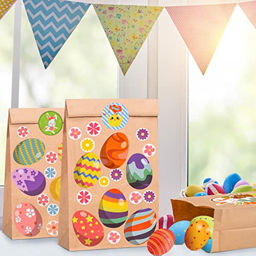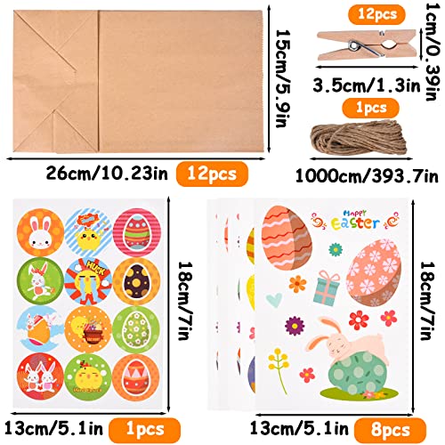 Ulikey Sacchetti per Regali per la Pasqua, 12 Pezzi Sacchetti di Carta per Pasqua con 9 PCS Adesivi Pasquali e 12 PCS Clip in Legno, Sacchetti di Caramelle di Carta di Pasqua per Regali di Pasqua