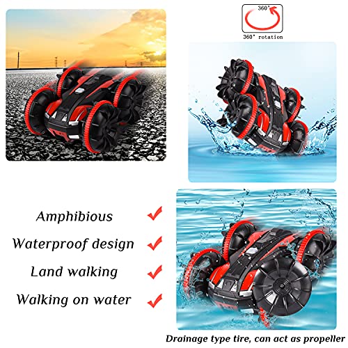 Ulikey 4WD Auto Telecomandata, 2.4GHZ Telecomando Macchina, Ricaricabile Auto Telecomandata, RC Stunt Car 360° Rotating con Batteria Ricaricabile Amphibious Auto telecomandata per Bambini Regali